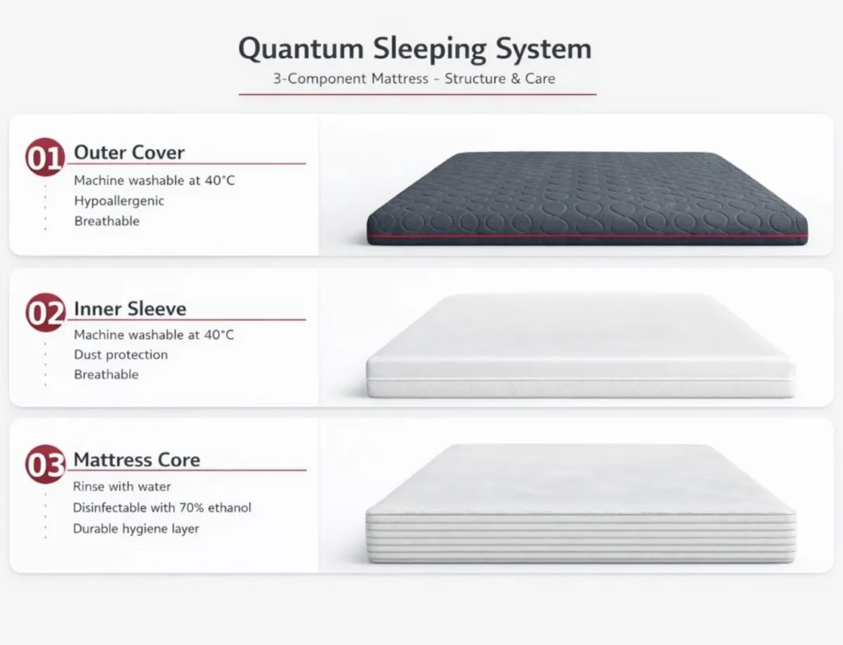 The Quantum Sleeping System features an innovative 3-component structure where each part can be cleaned or replaced individually.